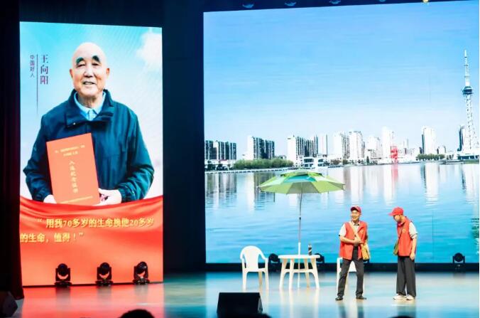 情景劇《昭陽湖上的“哨兵”》是根據興化本地的“中國好人”王向陽的故事創排的。2020年,75歲的王向陽跳入水中,奮力救下了200斤重的落水小伙,被網友們稱為“神勇大爺”。在他的帶領下,興化市成立了防溺水志愿服務隊。如今,年近八旬的王老依舊作為昭陽湖上一位守護生命安全的“老哨兵”活躍在志愿服務的第一線。作為先進典型代表,王老也來到現場全程觀看了節目,并與觀眾親切互動。
