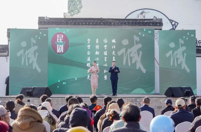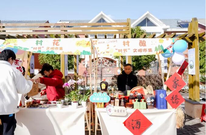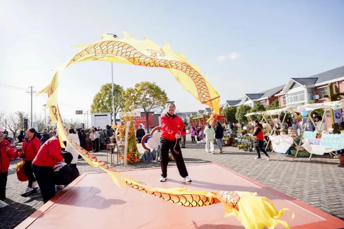 巡演的舞臺設置在如皋市城北街道平園池村的新時代文明實踐站,演出開始之前,《溫暖秋冬·文明實踐過“村節”》新時代文明實踐主題活動也在火熱開展?;颖硌荨⒈忝穹?、助農直播……文明市集洋溢著歡聲笑語,現場氛圍在冬日暖陽下更顯熱氣騰騰。