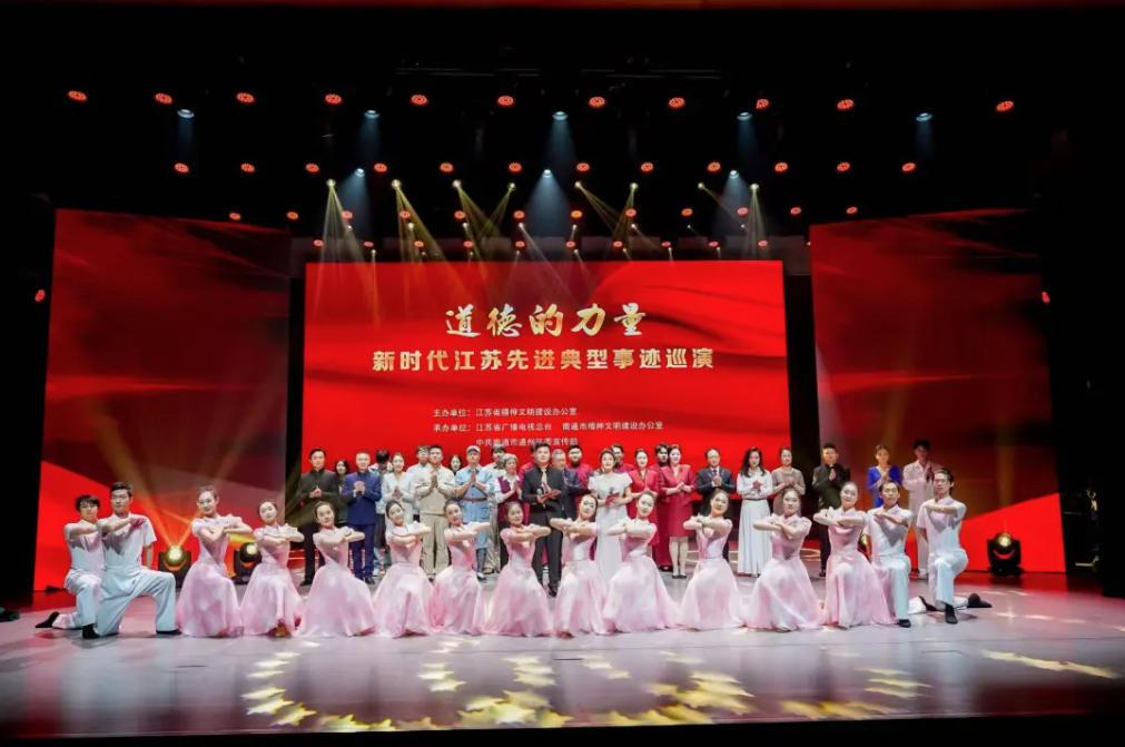 2022年以來,江蘇省精神文明建設辦公室聯合江蘇省廣播電視總臺創新開展了“道德的力量”新時代江蘇先進典型事跡巡演。三年來,巡演以文藝“輕騎兵”方式深入行業基層單位和各地新時代文明實踐中心(所、站)開展惠民演出,他們走進文明單位傳播職業道德教育,走進大中小學校打造美德思政課,走進田間地頭、來到群眾身邊,傳遞真善美、弘揚正能量,已成為我省精神文明建設的重要品牌,推動優質文化資源直達基層的有效載體。