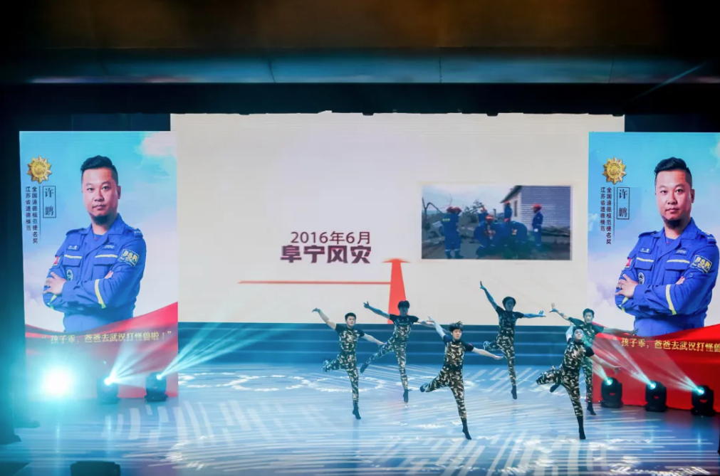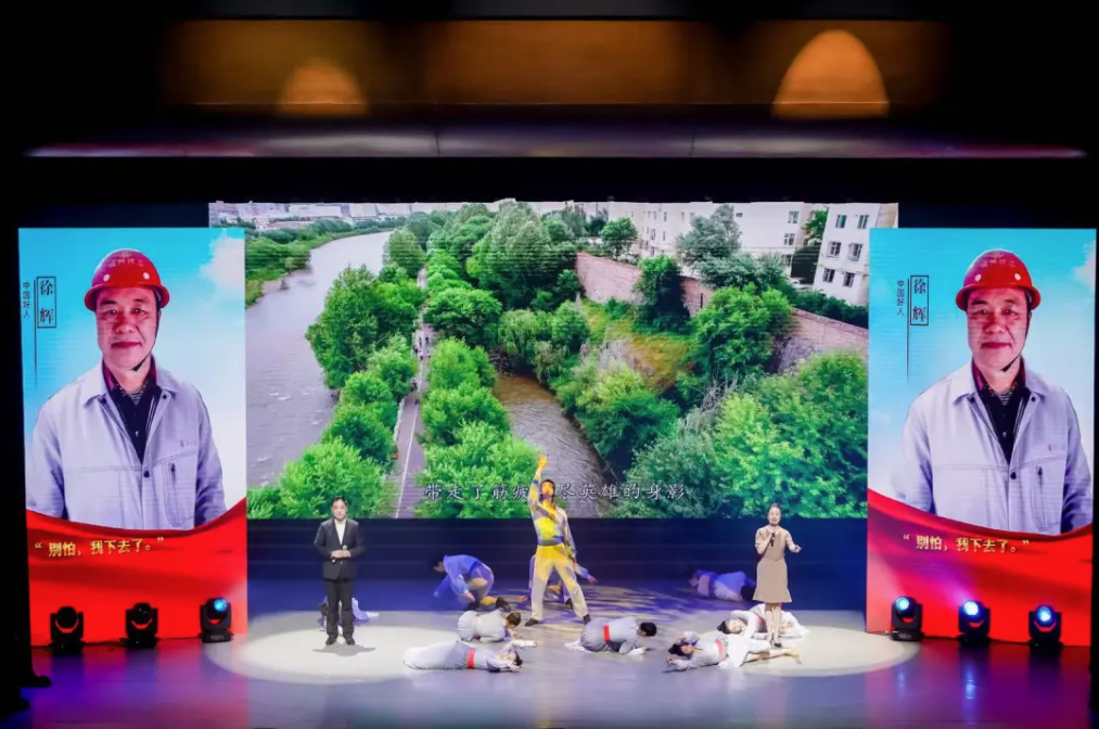 2023年7月19日,南通通州建總的建筑工程師徐輝在青海西寧工作時,忽然發現一名女子在河水中掙扎求救,62歲的他沒有多想,縱身跳入,奮力施救落水者,但因河水急流涌動,最終因體力不支,被卷入水渠深處。以中國好人徐輝為原型創排的情景詩畫《輝映人間》深深打動了現場的觀眾。