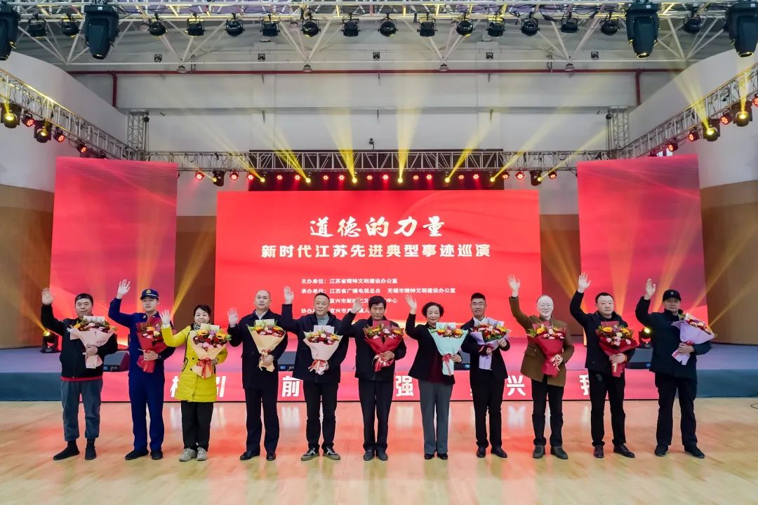 本次演出是“道德的力量”巡演的第56場,也是今年巡演的“收官場”,除了戲曲聯(lián)唱《榜樣的力量》、情景講述《點亮愛心》、情景詩畫《堅守》、朗誦《追尋》等經(jīng)典節(jié)目外,又結(jié)合當?shù)靥厣尤肓藨蚯段拿魈斩挤滞鈰伞贰,F(xiàn)場,以江蘇涌現(xiàn)的先進典型事跡為素材的文藝節(jié)目,通過精心編排、精彩演繹,為觀眾傳遞了先進典型的崇高精神和堅定信仰,讓道德的力量浸潤人心。