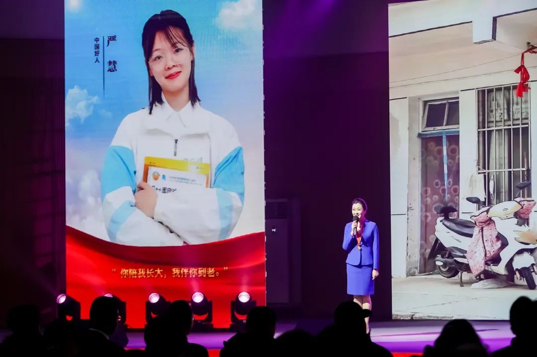 《帶著奶奶上大學》講述了“中國好人”、淮陰師范學院歷史文化旅游學院的學生嚴慧失去雙親后,一邊完成學業(yè),一邊照顧失明的奶奶的故事。一句“你陪我長大,我伴你到老”讓嚴慧和奶奶成了淮陰師范學院的校園里一道溫暖的風景?!皣阑劢憬愕墓适伦屛液芨袆?,我以后也要以她為榜樣,孝順長輩?!敝荑F中學初一五班的張妙洋說。
