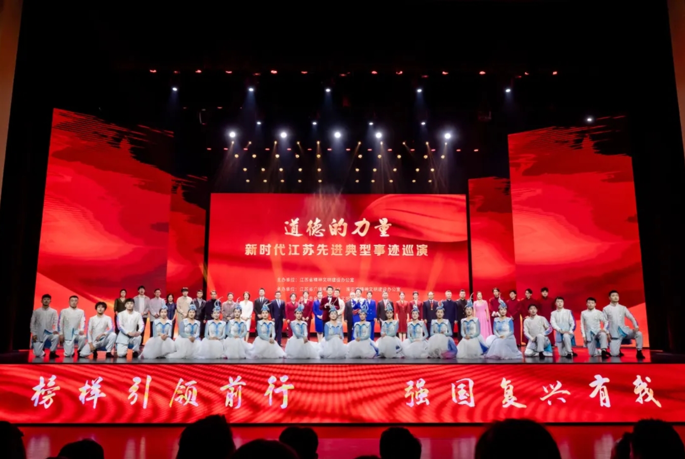 值得一提的是,由江蘇省精神文明建設(shè)辦公室主辦,江蘇省廣播電視總臺、淮安市精神文明建設(shè)辦公室、淮安市金湖縣新時(shí)代文明實(shí)踐中心承辦的“道德的力量”新時(shí)代江蘇先進(jìn)典型事跡巡演走進(jìn)金湖縣,為廣大群眾送上了一臺文化大餐。此次演出以黨的十八大以來江蘇涌現(xiàn)出的先進(jìn)典型事跡為素材,運(yùn)用歌舞、快板、戲曲、朗誦、情景短劇等多種藝術(shù)形式,展現(xiàn)錢七虎、周維忠、李慶國、於如桂等先進(jìn)典型的事跡和精神,推動(dòng)社會見賢思齊、崇尚英雄、爭做先鋒。