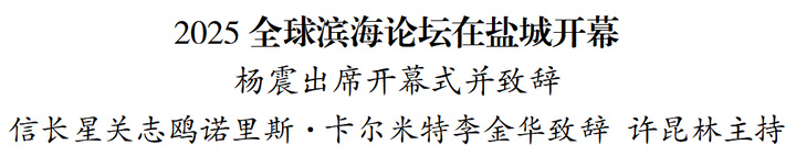 9月24日,2025全球?yàn)I海論壇在鹽城開幕。全國政協(xié)副主席、農(nóng)工黨中央常務(wù)副主席楊震出席開幕式并致辭。省委書記信長星、自然資源部部長關(guān)志鷗、瓦努阿圖漁業(yè)海洋事務(wù)部部長諾里斯·卡爾米特、國家林業(yè)和草原局副局長李金華致辭。省長許昆林主持。