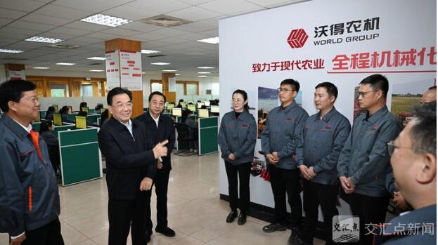 在沃得農(nóng)業(yè)機(jī)械公司,各式農(nóng)機(jī)裝備依次排列。信長星通過信息化平臺了解農(nóng)機(jī)運(yùn)行情況,觀摩無人駕駛農(nóng)機(jī)演示,對企業(yè)積極融入共建“一帶一路”、拓展海外市場給予肯定。他指出,農(nóng)業(yè)現(xiàn)代化,關(guān)鍵是農(nóng)業(yè)科技現(xiàn)代化。中央《建議》對推進(jìn)高端智能、丘陵山區(qū)適用農(nóng)機(jī)裝備研發(fā)應(yīng)用專門作出部署,未來農(nóng)業(yè)機(jī)械產(chǎn)業(yè)市場空間廣闊。希望企業(yè)依托我省科教資源和產(chǎn)業(yè)配套優(yōu)勢,堅(jiān)持智能化、綠色化、融合化方向,大力推進(jìn)產(chǎn)學(xué)研融通創(chuàng)新,推出更多新技術(shù)新裝備,為提升農(nóng)業(yè)綜合生產(chǎn)能力和質(zhì)量效益、加快建設(shè)農(nóng)業(yè)強(qiáng)國作出更大貢獻(xiàn)。
