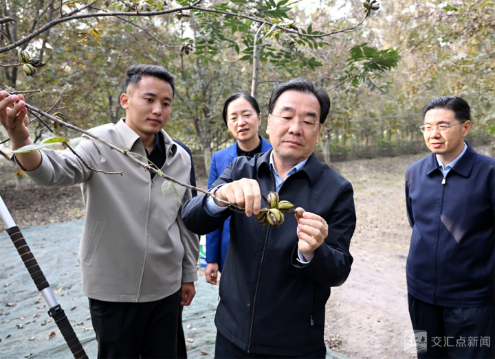泗洪金海岸生態農業基地碧根果掛滿枝頭,果農們正忙著采摘。信長星走進種植園,仔細了解全縣碧根果種植面積、主要品種、產量價格、加工銷售等情況。他指出,要大力發展科技農業、綠色農業、質量農業、品牌農業,推動農文旅融合,不斷延伸產業鏈、增加附加值,帶動群眾增收致富。各地要立足資源稟賦,因地制宜發展特色產業,培養更多“新農人”,推動農業農村現代化取得新成效。