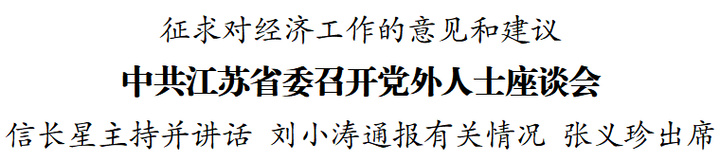 近日,中共江蘇省委召開黨外人士座談會(huì),就我省今年經(jīng)濟(jì)形勢(shì)和明年經(jīng)濟(jì)工作聽取各民主黨派省委會(huì)、省工商聯(lián)負(fù)責(zé)人和無黨派人士代表意見建議。省委書記信長(zhǎng)星主持座談會(huì)并講話。省委副書記、省長(zhǎng)劉小濤通報(bào)全省經(jīng)濟(jì)工作有關(guān)情況,介紹明年經(jīng)濟(jì)工作有關(guān)考慮。省政協(xié)主席張義珍出席。