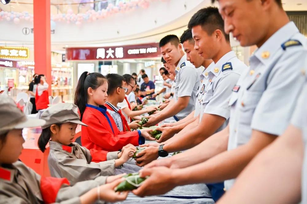 抗戰老兵、消防指戰員、青年團員、紅媽志愿者、少先隊員齊包紅心粽、制作紅媽香囊。粒粒潔白的糯米包進綠色的粽葉中,也包進了群眾對子弟兵的無限崇敬之情。