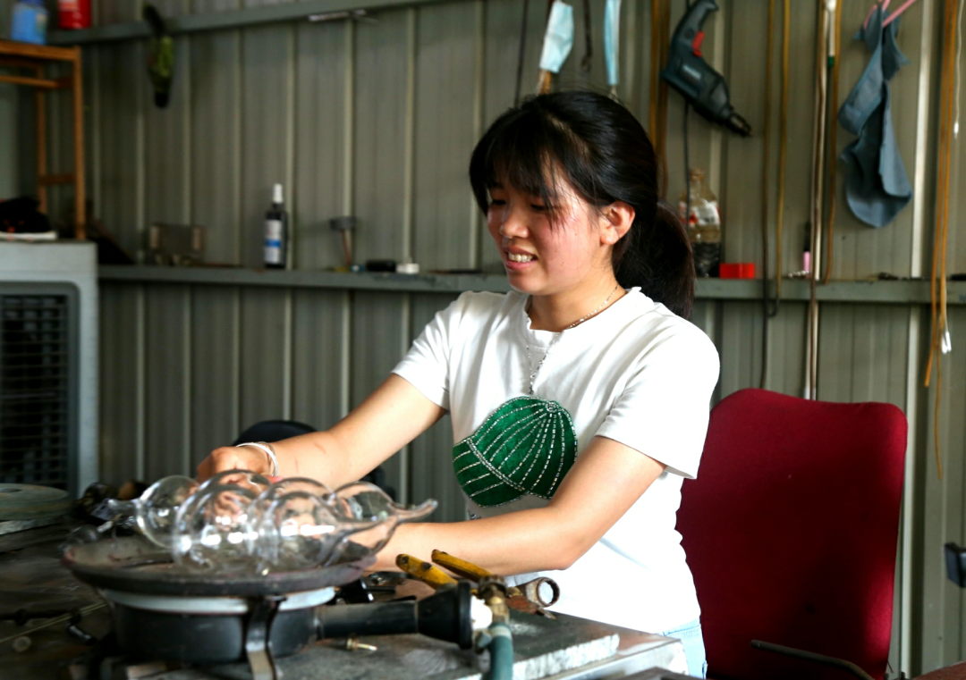 從廣州回來后,兩個人到小官莊玻璃廠上班,李吉春是吹玻璃的熟手,賴月萍卻一點不會,她主動要求學習吹玻璃,不怕悶熱、不懼活多,她手腳勤快悟性強,很快學會了吹玻璃的技術,打工幾年后,兩個人決定回家辦玻璃加工廠。小廠子搭建好了兩個月,沒有一份訂單上門,李吉春就到以前打工的玻璃企業(yè)懇請人家分一點訂單給他們做,都說同行是冤家,但李吉春誠實本分,給他們留下極好的印象,訂單多時會分一些急活給他。