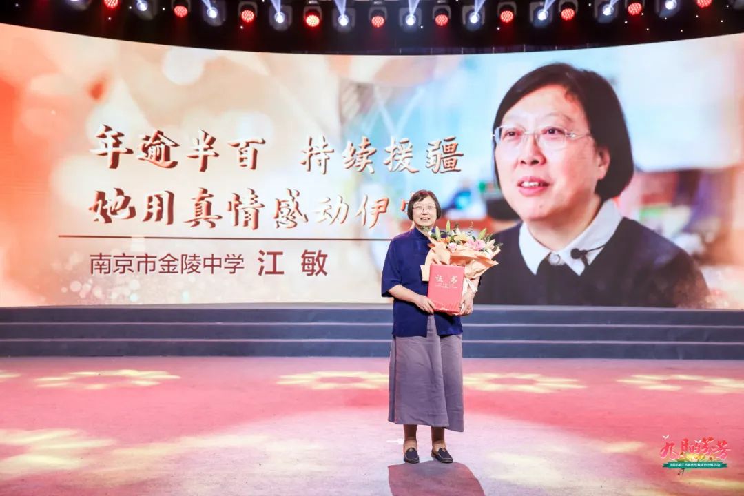主題活動現(xiàn)場,還舉行了“2022江蘇教師年度人物”頒獎儀式。由江蘇省教育廳、江蘇省總工會主辦,全省13個設(shè)區(qū)市教育局和省內(nèi)部分高校共推薦候選教師244人,最終南京市金陵中學江敏等20位教師當選“2022江蘇教師年度人物”,南京特殊教育師范學院張九童等20位教師獲提名獎。